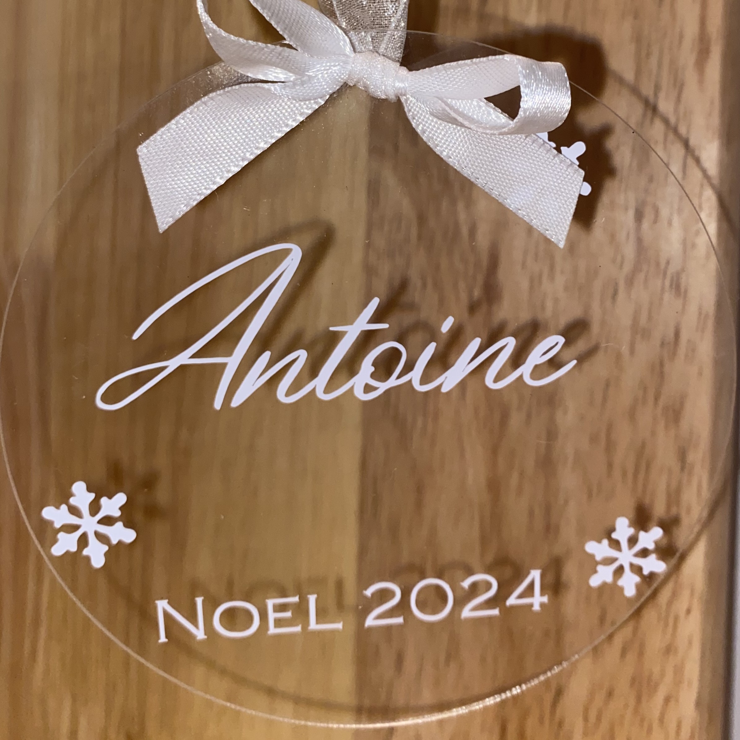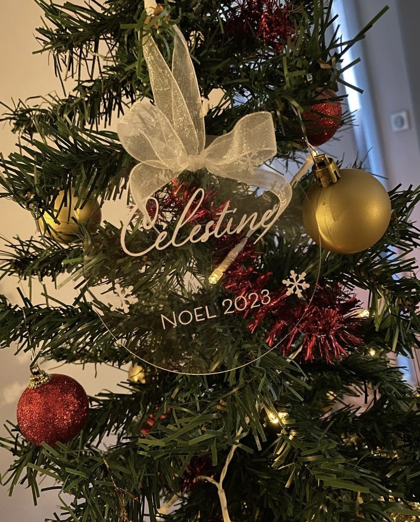 Ajoutez une touche personnelle à votre décoration de Noël avec notre magnifique boule de Noël personnalisée ! Confectionnée avec soin, cette boule en acrylique transparent offre un espace parfait pour y inscrire un prénom, créant ainsi un souvenir inoubliable pour vos proches.